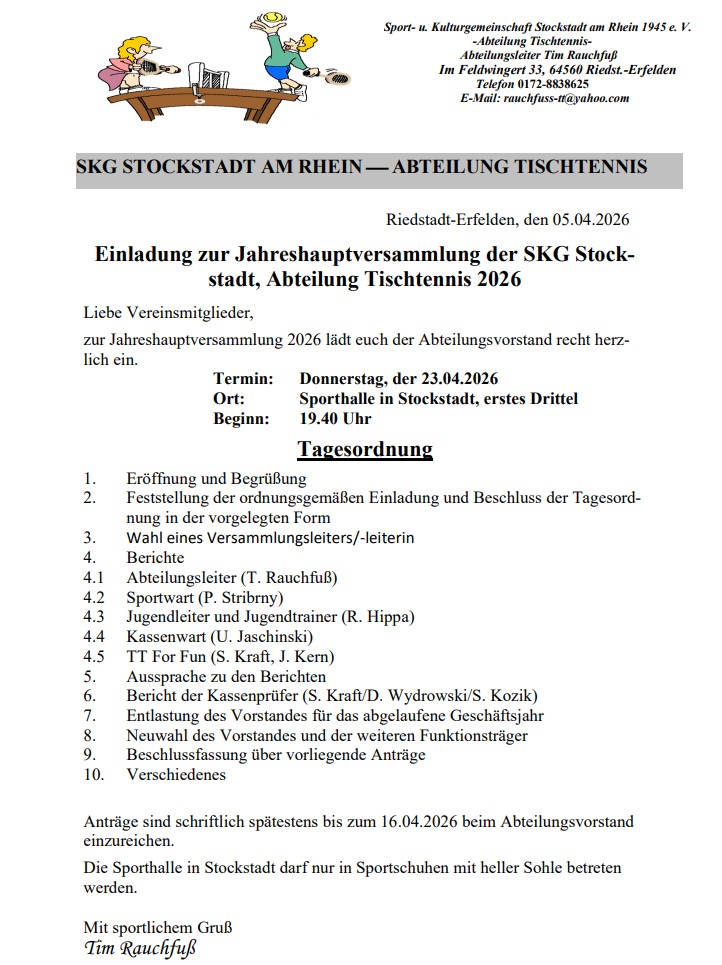 Neue Vereinsmitglieder jeden Alters und auch Tischtennis-Freunde, die bisher diese Sportart nur gelegentlich zu Hause betrieben haben, sind uns herzlich willkommen.